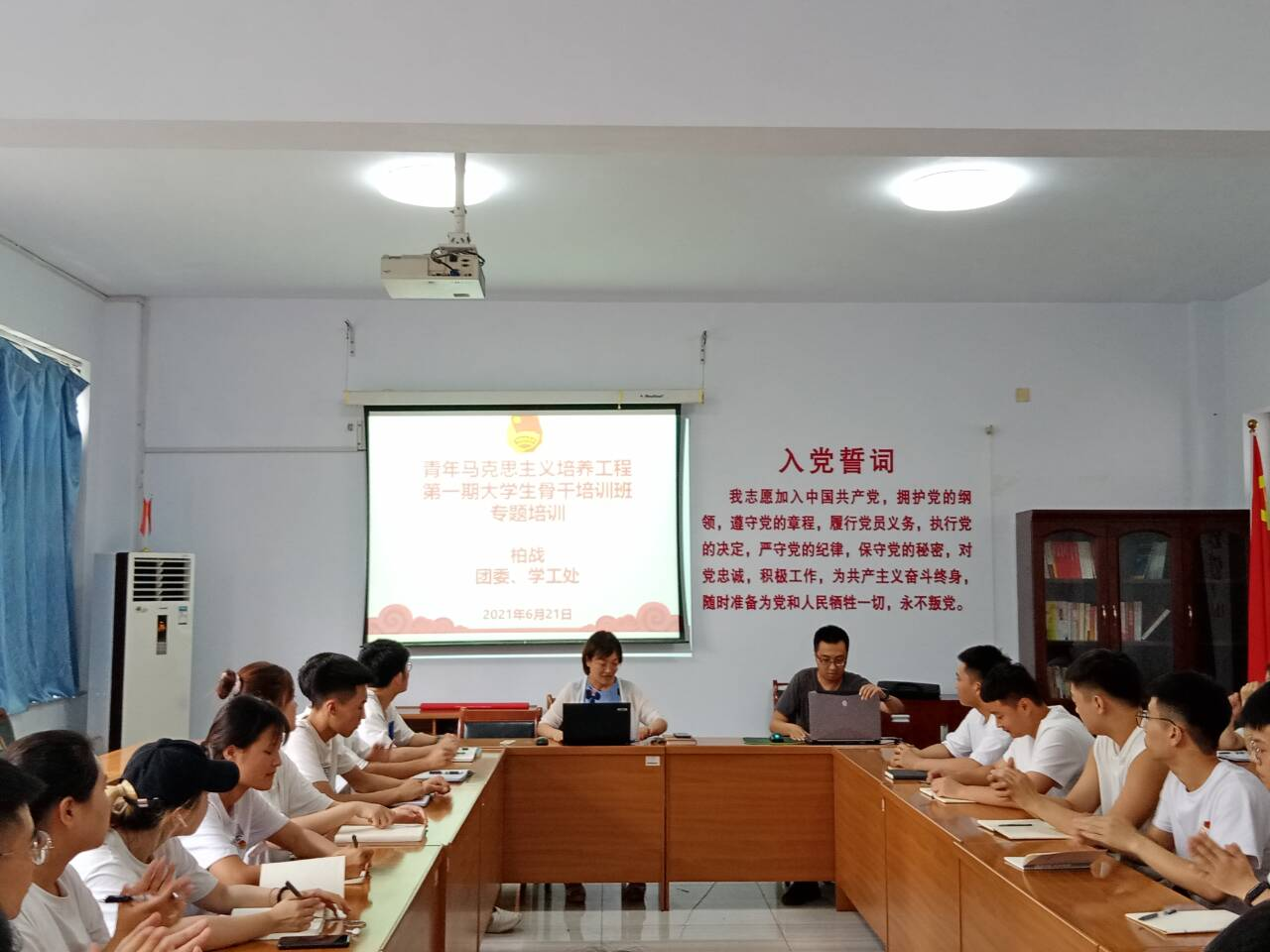 为进一步提高Bevictor伟德官网团员青年的思想政治素质、政策理论水平,引导其真正成为习近平新时代中国特色社会主义思想的忠实信仰者、自觉践行者、坚定捍卫者。帮助大家在实际学习和生活中更好地发挥各自特长与潜质,不断配合、协作和相互学习与借鉴的能力。2021年6月21日,Bevictor伟德官网举行“青年马克思主义者培养工程第一期老员工骨干培训班”。Bevictor伟德官网团总支书记张红与校团委、学工处柏战老师以及培训班的全体学员出席了本次培训党课。
