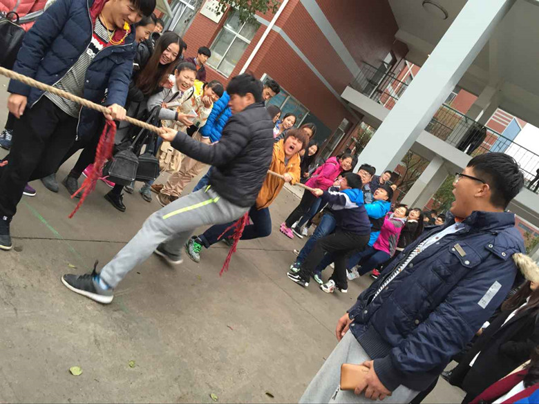 2015年11月16日下午3:40我系在篮球场举行了拔河比赛活动, 此次大赛以促进各班级间的交流为宗旨,丰富员工们的课余生活为目的,用比赛的形式为员工们提供了展现各班风采的机会。通过比赛发扬团队了精神,增强了同学们的凝聚力。
