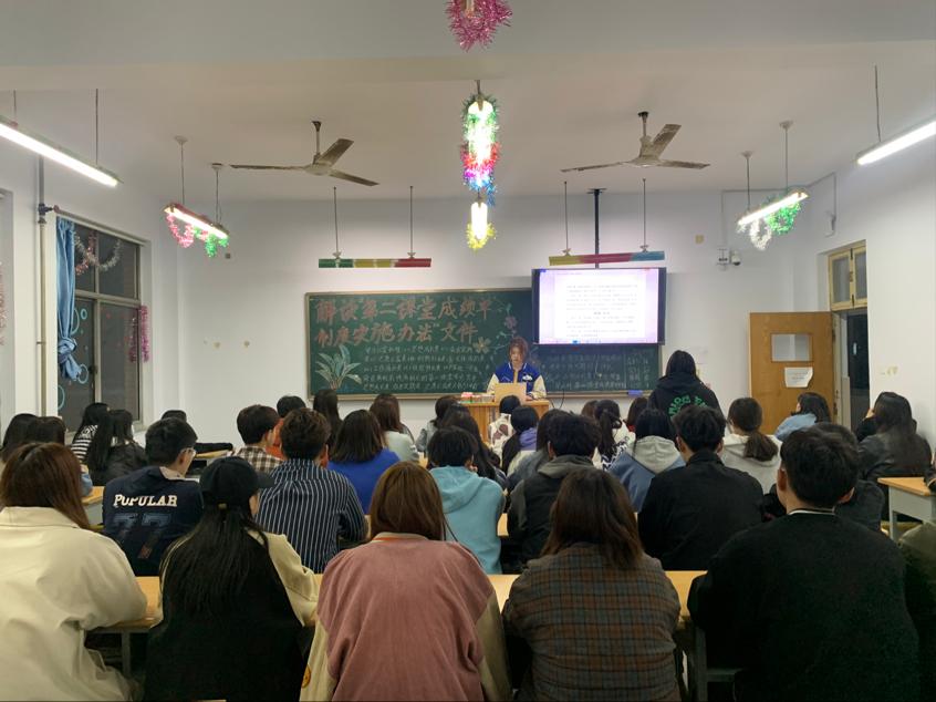 此次活动于18点30分正式开始,各班团支书带领同学们进行“第二课堂成绩单制度实施办法”总则学习,了解了其学习模块大致分为,思想成长类、社会实践类、志愿公益类、创新创业类、文体活动类、技能特长类、其他类多个模块,并设有专门的指导监督小组,保障大家成绩的公平公正性。公司会通过开展各类丰富的活动让同学们积极参与到第二课堂当中,激发同学们的兴趣,如学术报告与讲座、主题教育活动、劳动技能训练等活动,丰富了同学们的课余生活,有利于彰显工商学子的青春活力。最后,团支书重点明确了第二课堂成绩单制度的重要性及优越性。本次活动于20点20分结束。