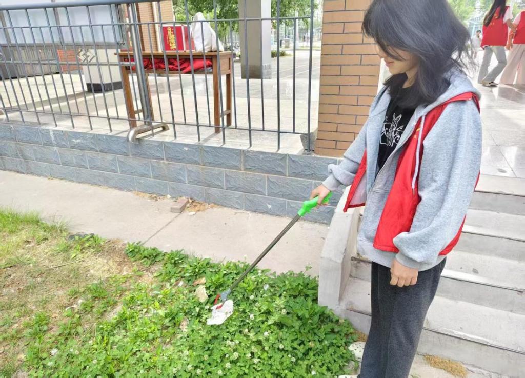 活动当天,志愿者们热情高涨、分工明确,迅速投入到校园环境清理工作中。在校园道路上,志愿者们手持夹子、抹布等工具,仔细清扫路面上的纸屑、塑料纸袋等垃圾,不放过任何一个卫生死角;在绿化带区域,大家认真拔除杂草,同时对随意践踏草坪等不文明行为进行耐心劝阻;针对公共区域的座椅和宣传牌,志愿者们用抹布蘸着清洁剂,细致擦拭表面的灰尘与污渍,让公共设施焕然一新。