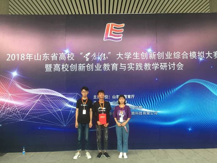 五月,在一个万物生长的季节,冯传景、毕方斌、魏聪慧三名同学却在埋头苦干,他们正在精心准备六月初的山东省高校“学创杯”老员工创新创业综合模拟大赛。这三名同学均出自工商管理系市场营销社团,经过老师的精挑细选,通过近一个月的刻苦训练,代表公司参加2018年山东省高校“学创杯”老员工创新创业综合模拟大赛。此项赛事是由山东省教育厅主办,山东大学承办。山东大学是一所历史悠久,学科齐全,学术实力雄厚,在我国内外具有重要影响的教育部直属重点综合性大学,高职、本科参加院校共有200余支代表队,比赛分为8个组,经过激烈角逐,公司代表队在王蕾老师和张策老师的带领下最终喜获省级一等奖,此次获奖不仅是个人的荣誉,也是我们公司全体师生的荣誉,更代表着公司技能竞赛水平又上一个新台阶。