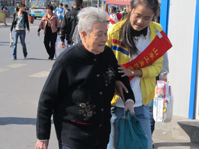 虽然天气比较寒冷,但是丝毫不减志愿者们的积极性。随着时间的推移客流量逐渐增多,志愿者们加入到维持乘车秩序队伍的行列中,为乘客指引车次,帮助行动不便的老人上下车,帮助乘客提行李。积极的服务,热情洋溢的笑脸给深秋的车站带去了温暖,他们的行动也得到了公交站工作人员的赞赏。