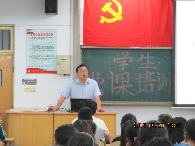 5月20日晚自习,工商管理系党支部在4号楼304合堂开展了“员工党课培训活动”。系党支部书记张述凯为入党积极分子们做了题目为“论中国梦的提出及其现实意义”的党课培训。