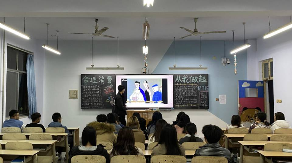 本次权益课于18时30分正式开始。首先,由各班负责人担任主持人,介绍本次权益课主题及大致内容,让同学们懂得适度消费,理性消费的深刻意义。其次,由各班负责人带领同学们观看相关文件,通过观看相关文件使同学们明白了量入为出、适度消费,避免盲目从众,理性消费,绿色消费。最后,各班负责人呼吁大家,把钱用到关键的地方,避免盲目消费,在自己能够承受的范围内购买物有所值、经济实用的商品;不与周围的人进行攀比,不要浪费金钱,当一个理性消费的文明人。