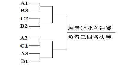 (2)第二阶段,单淘汰赛,按下图安排进行。(A1表示A组第一名,B3表示B组第三名,余者类推)