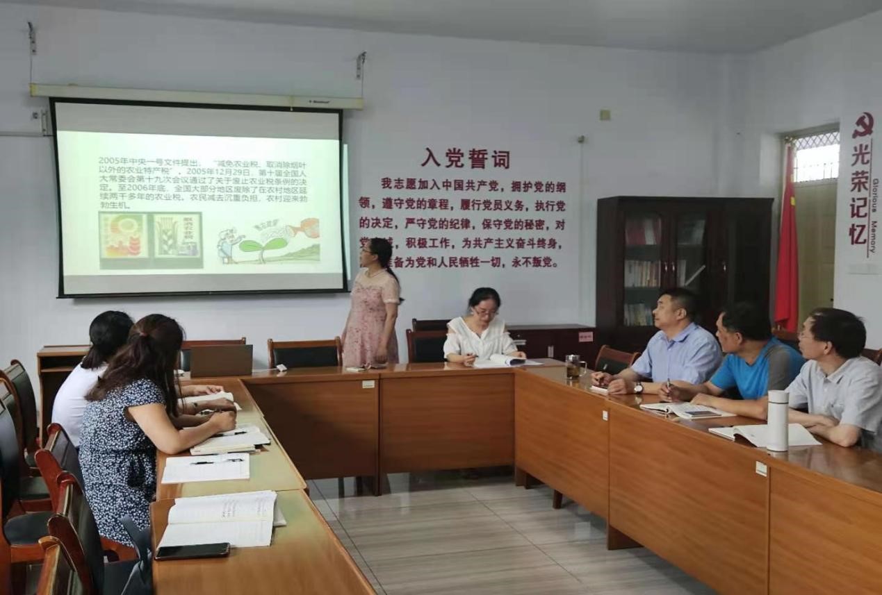 2021年6月15日,外语教师党支部在4-301党员活动室开展了“我来讲党课”活动。赵青老师主讲了题为“从家庭联产承包责任制到乡村振兴战略”的党课。